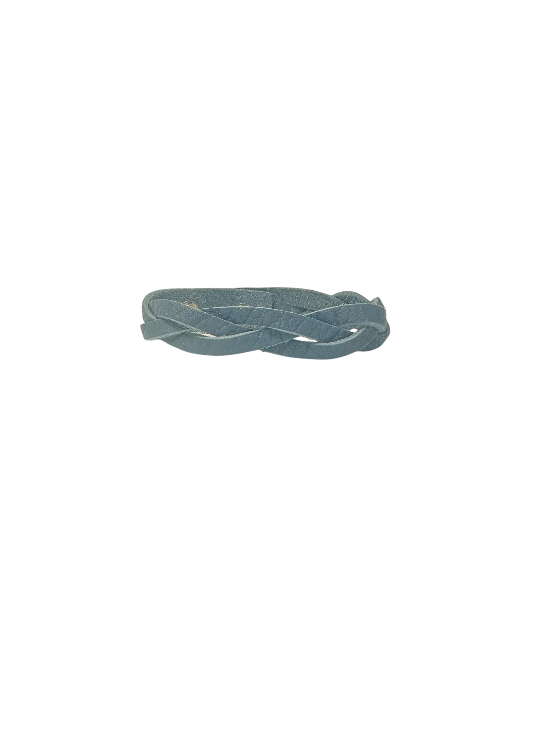 A bold bracelet, made of genuine braided leather in a rich light blue tone, blending rustic charm with contemporary edge.